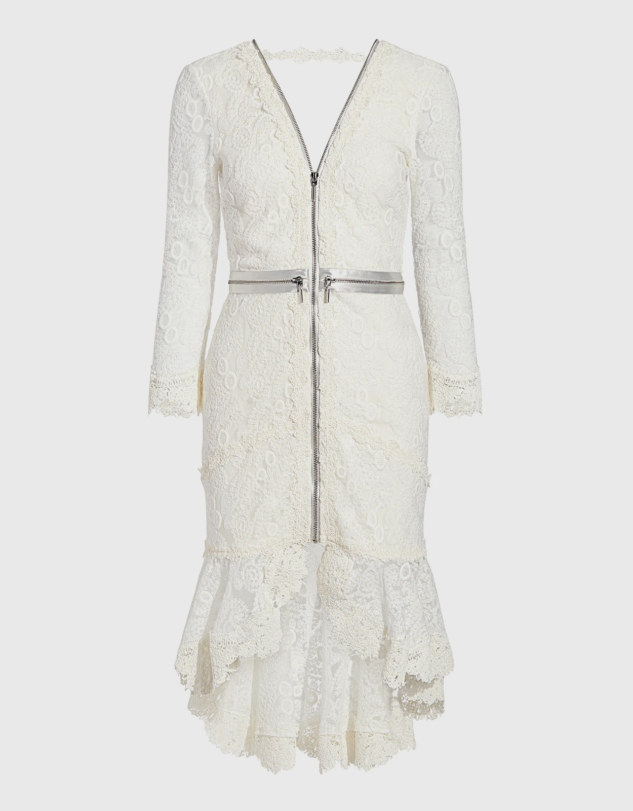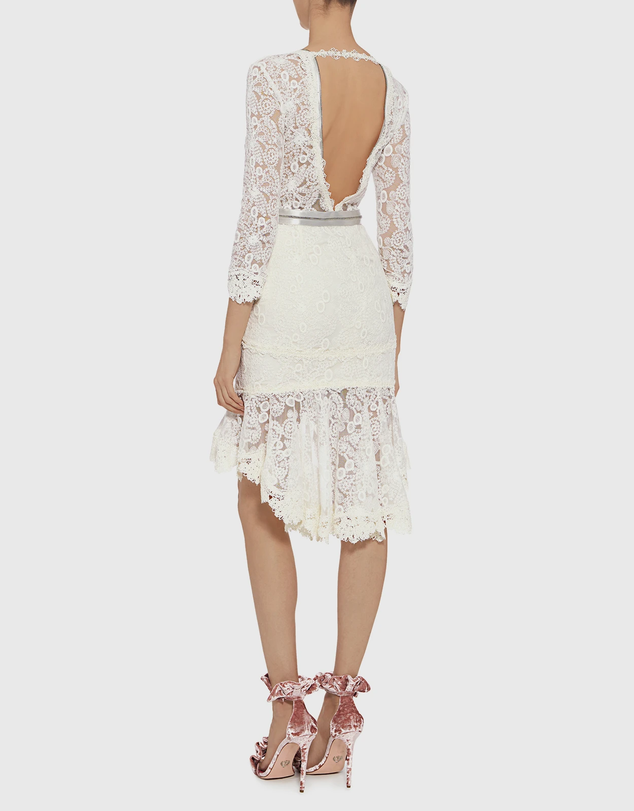 Alexis Parissa V Neck Open Back Lace Ruffled Mini Dress
