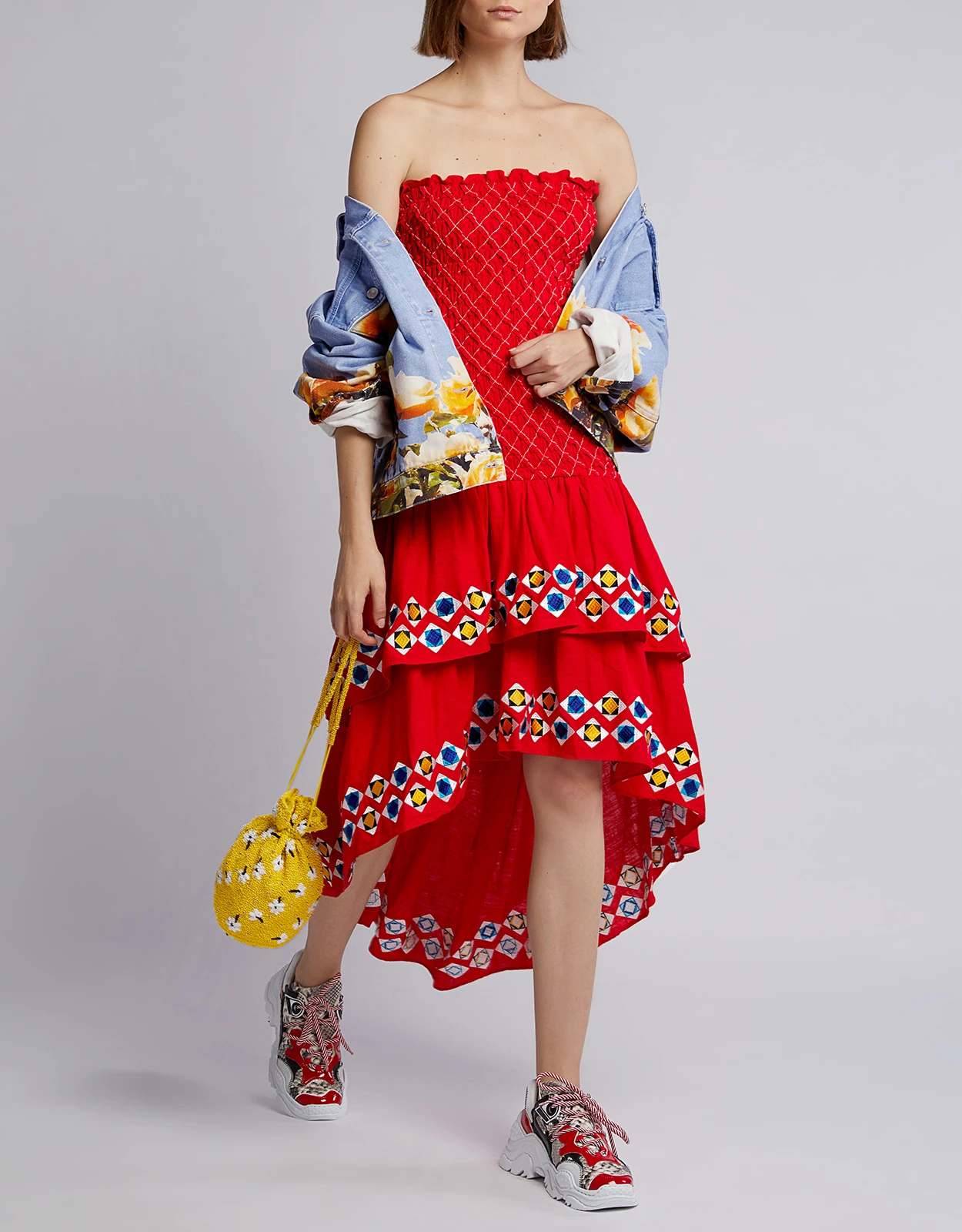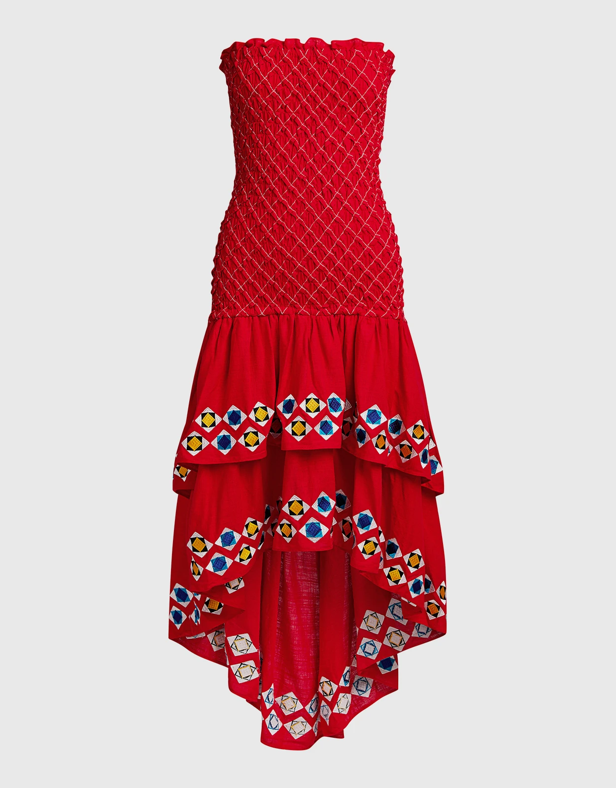 Alexis Revada Geometric Embroidered Tiered Knee Length Dress