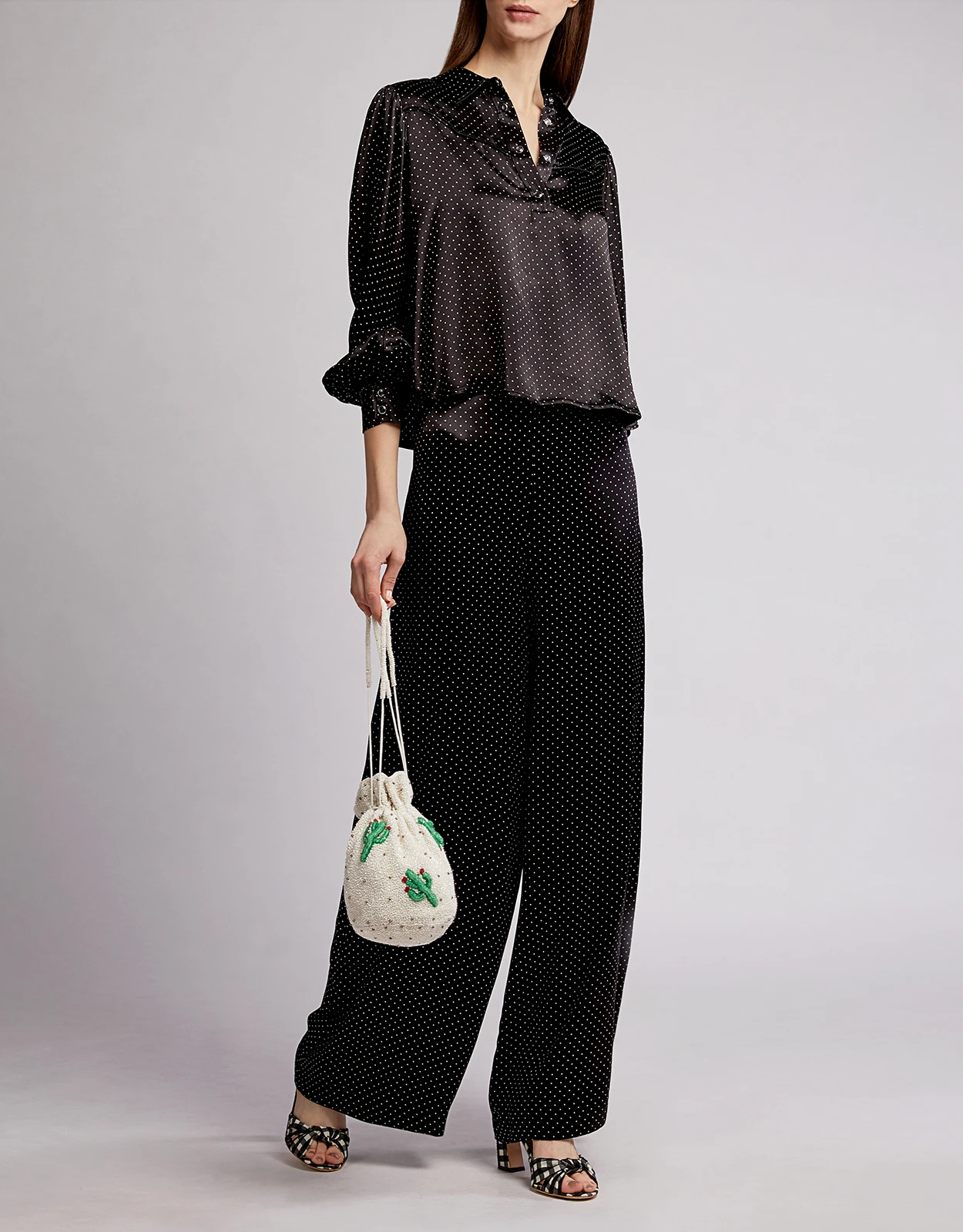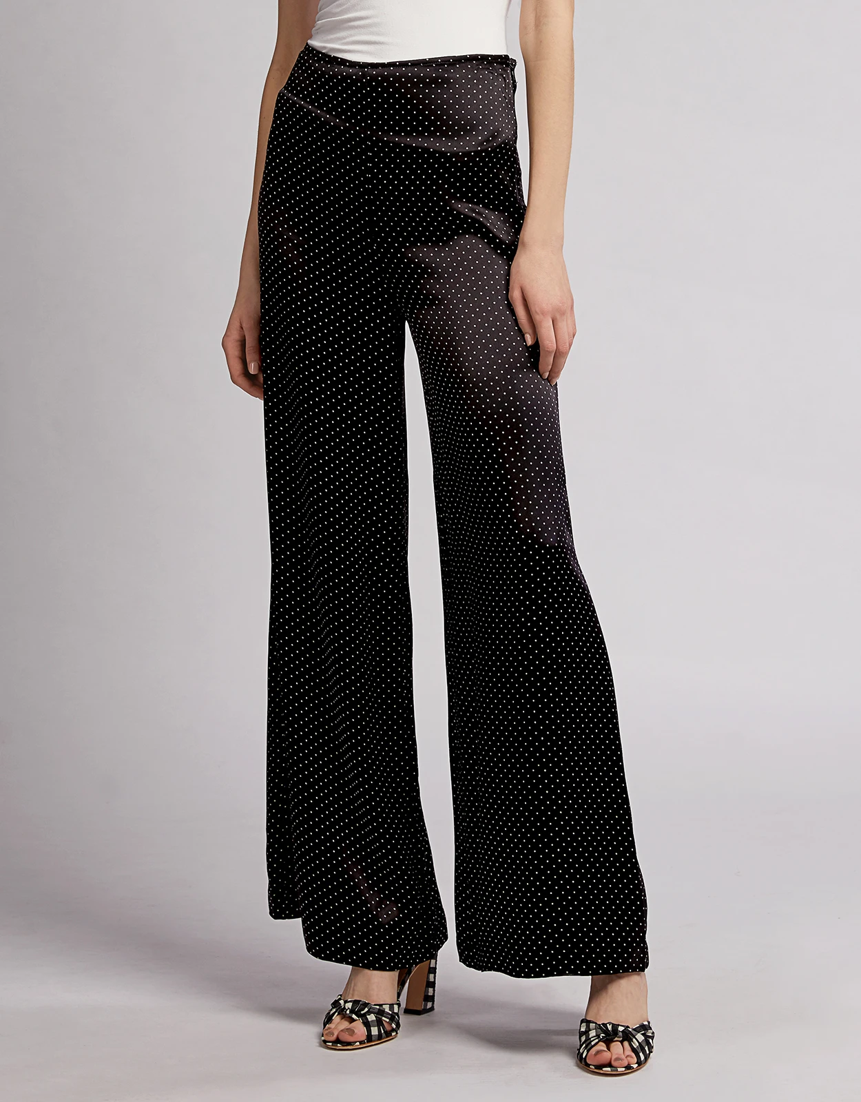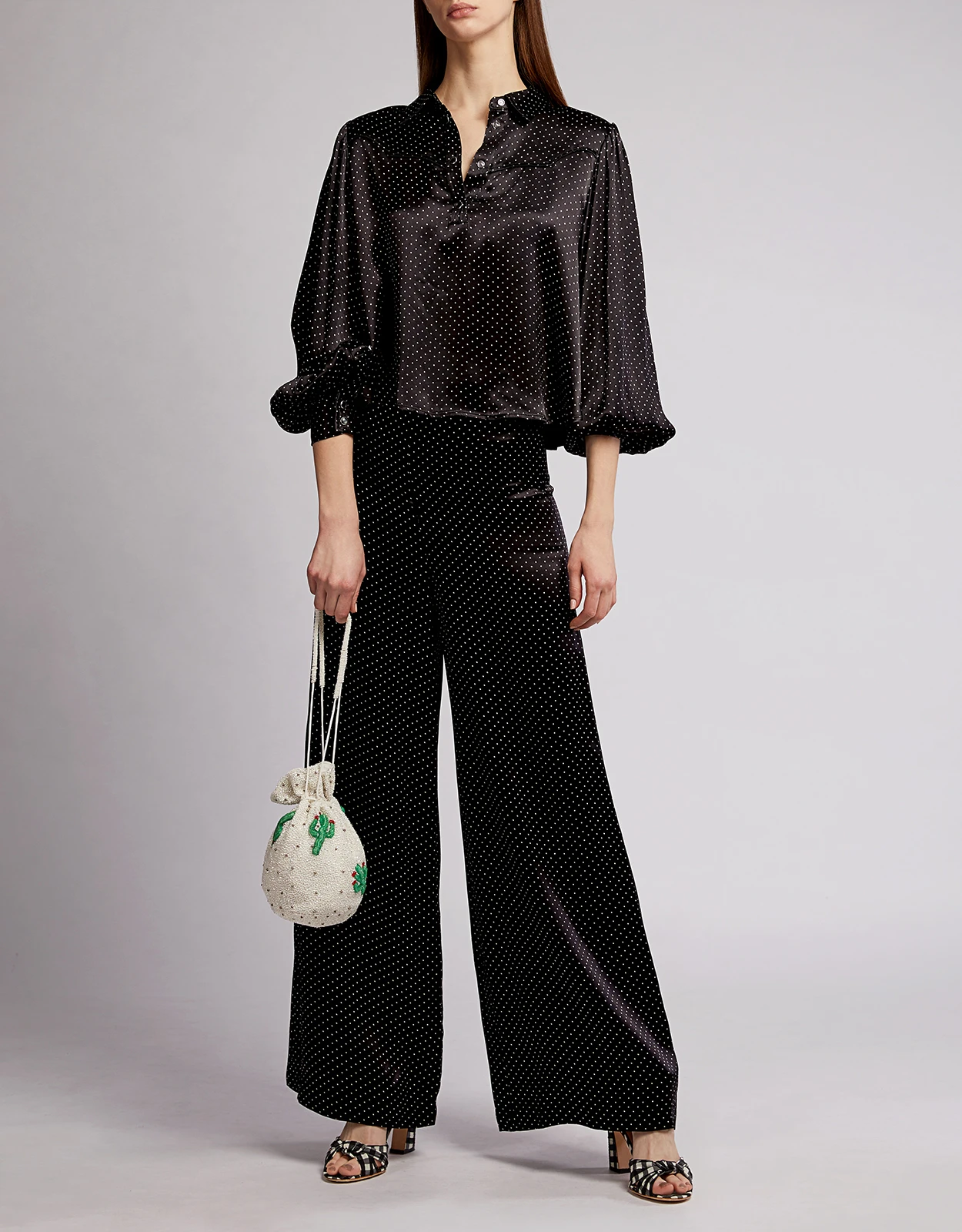 Ganni Cameron Dotted Satin Wide-leg Pants