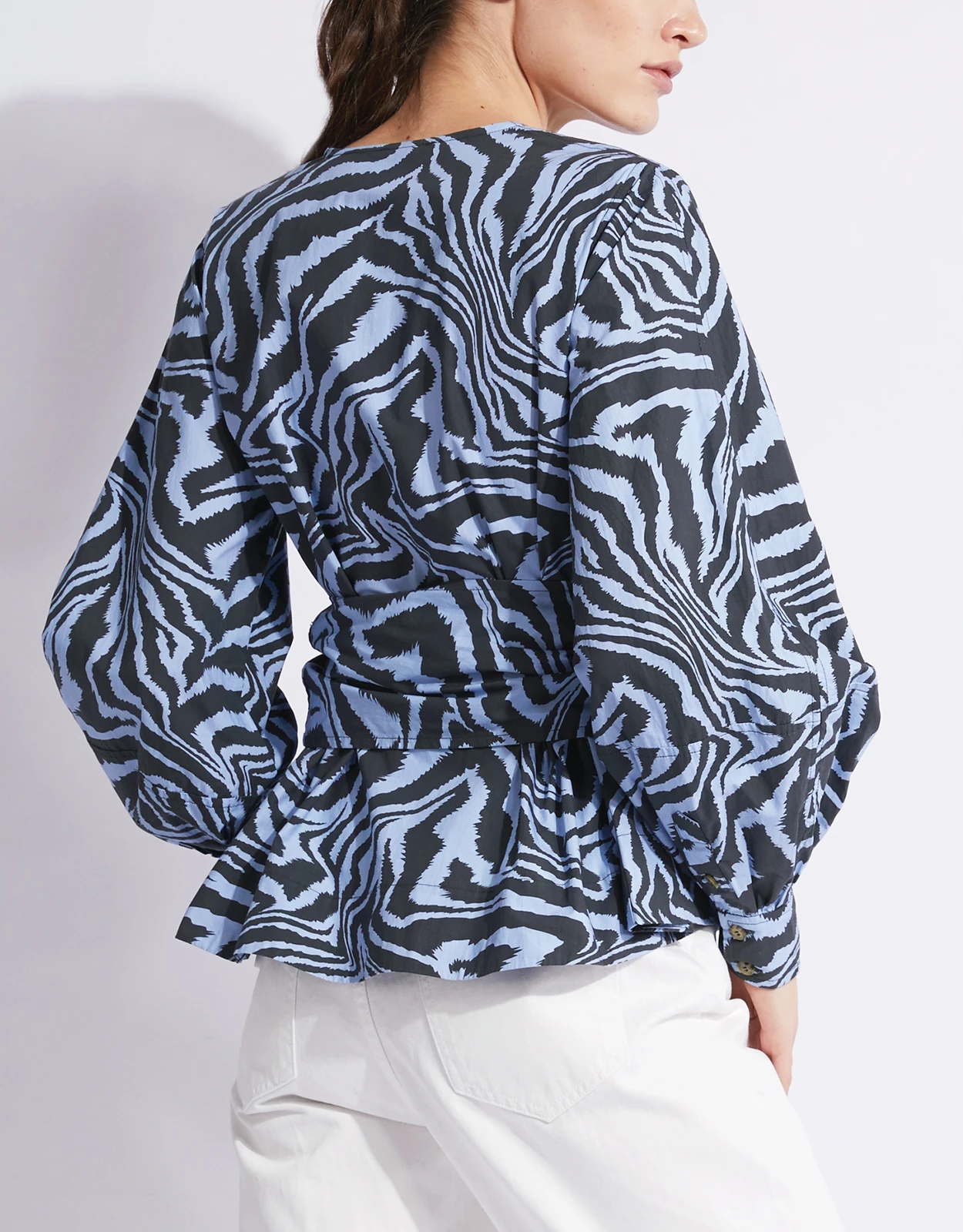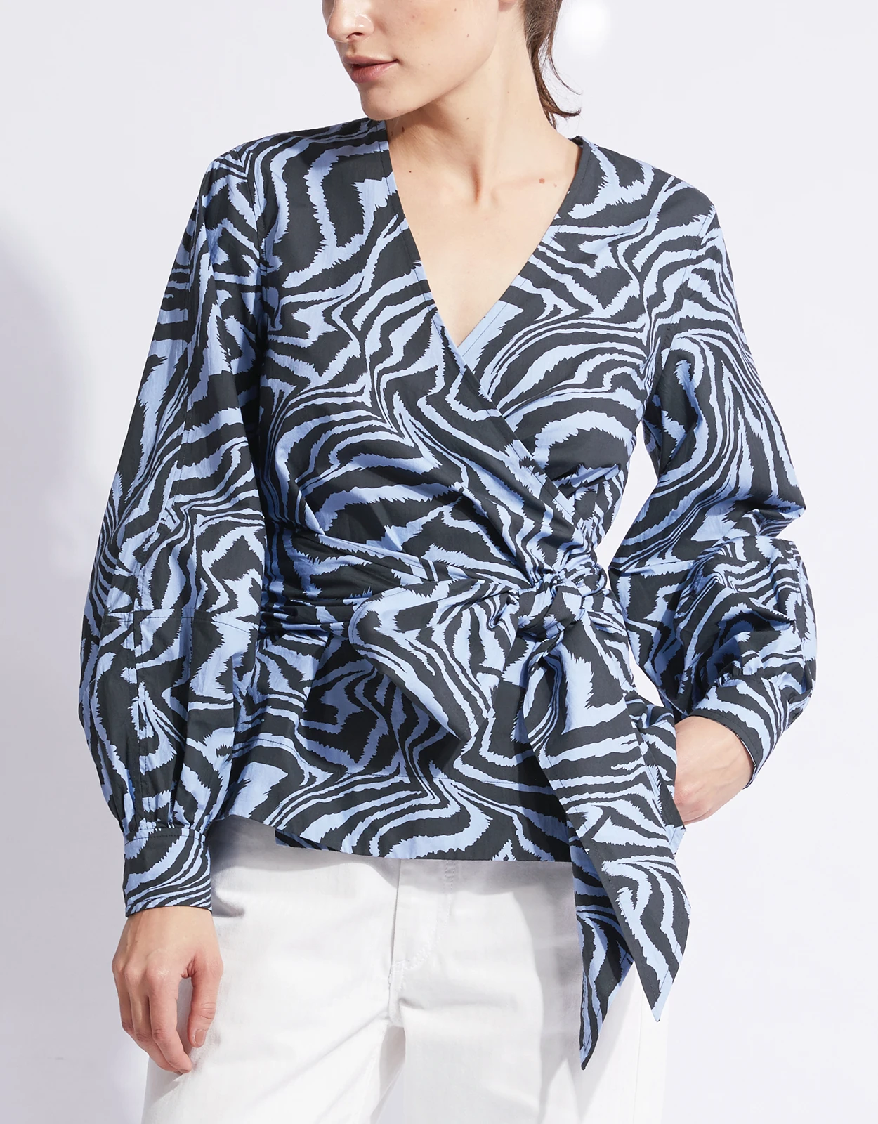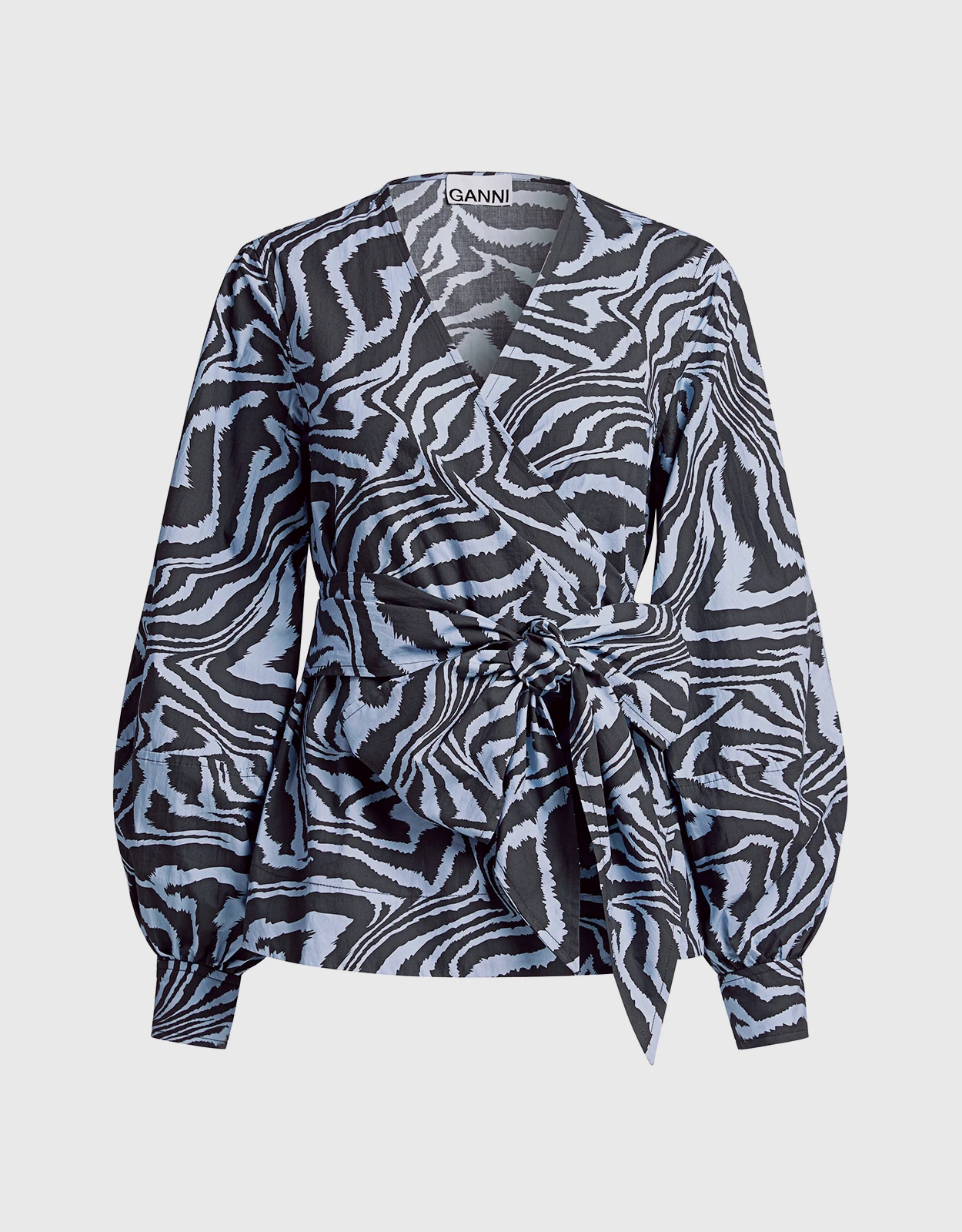 Ganni V-neck Tiger-print Cotton Wrapped Shirt Top