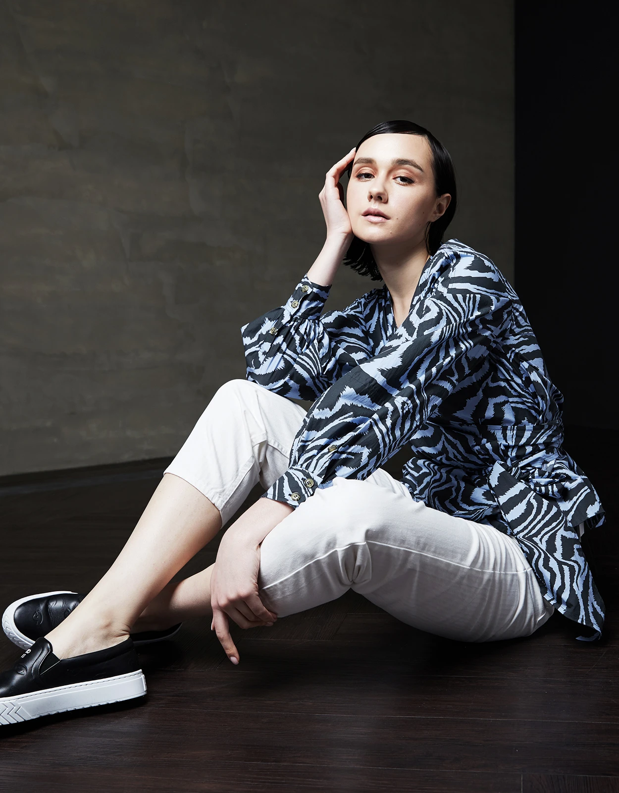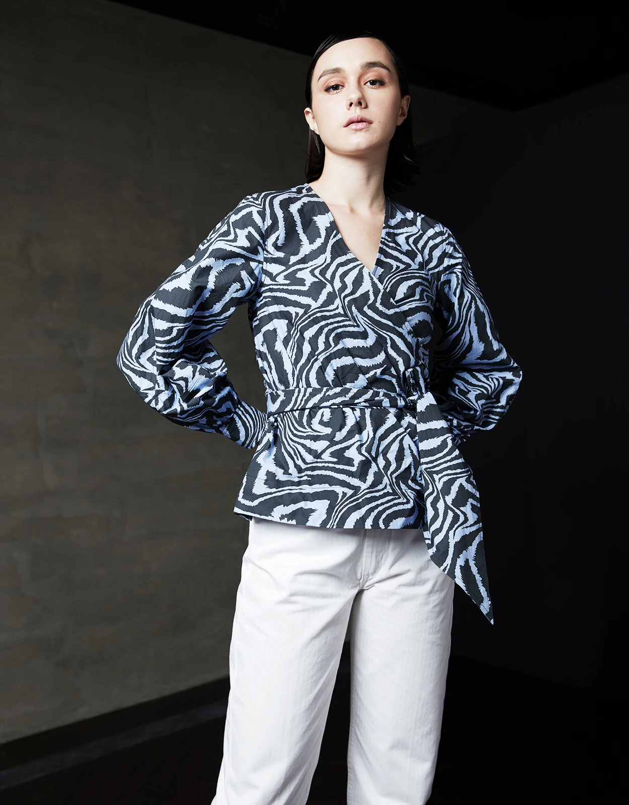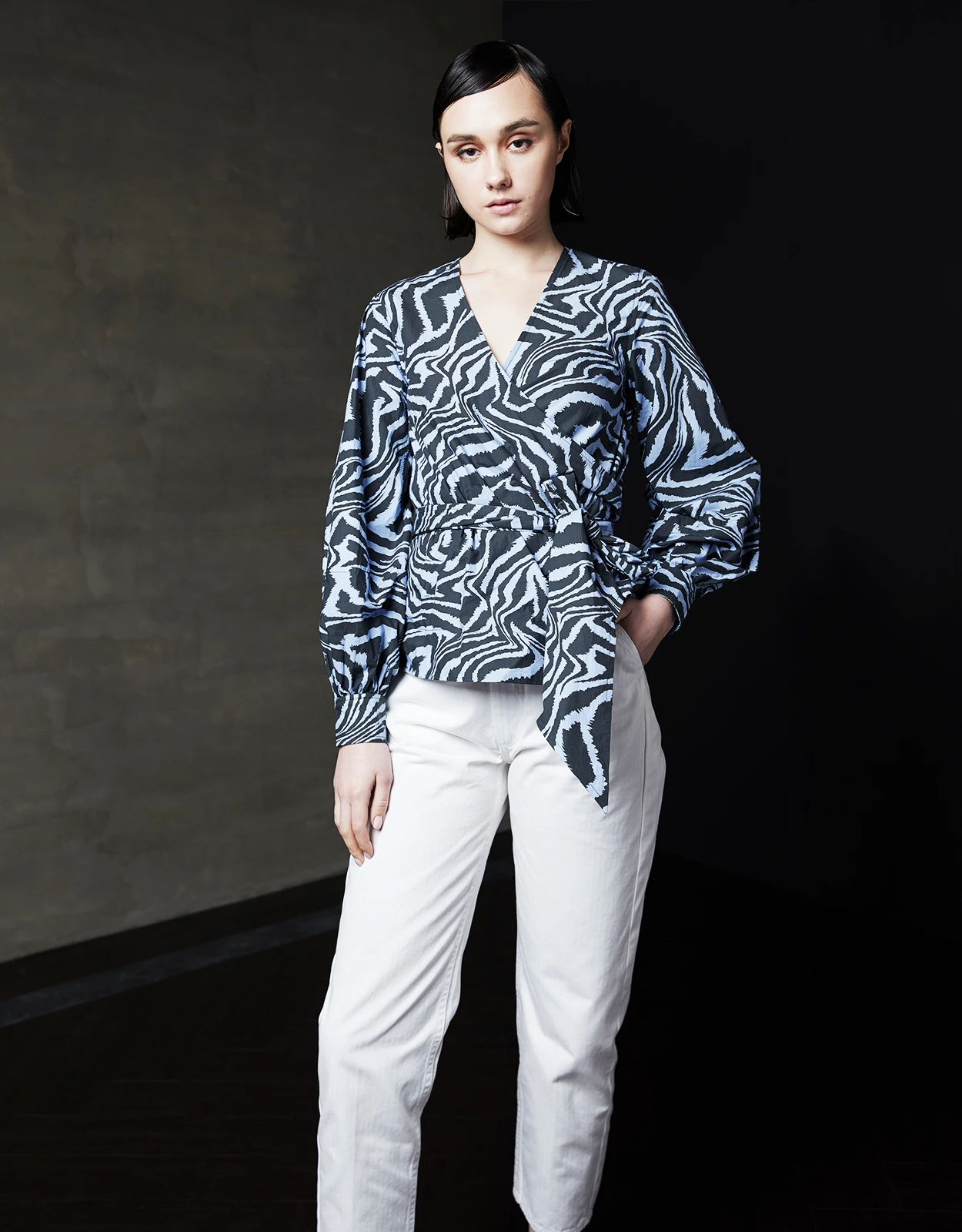 Ganni V-neck Tiger-print Cotton Wrapped Shirt Top