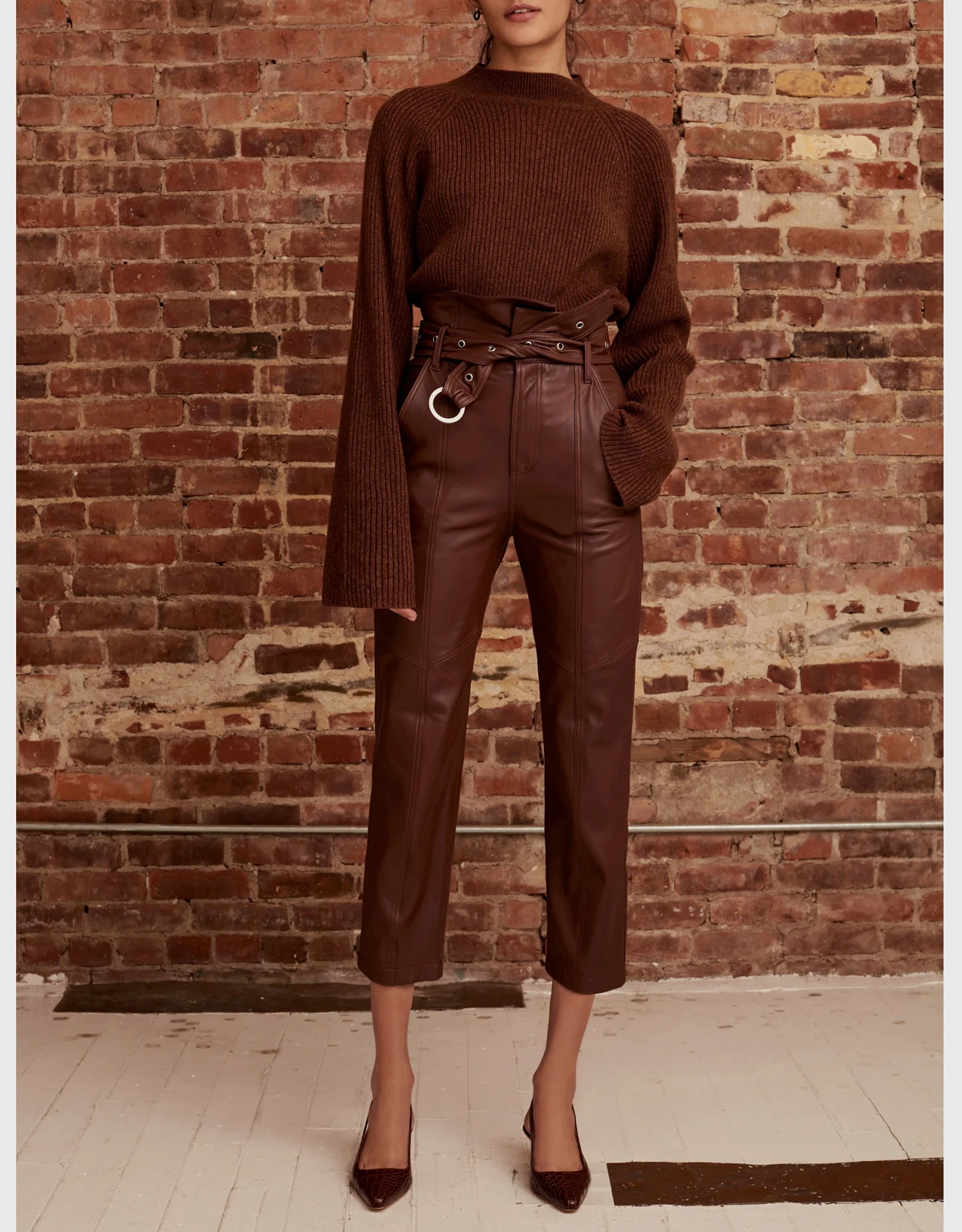 Marissa Webb Lamb Leather Anniston Belted High-rise Cropped Pants