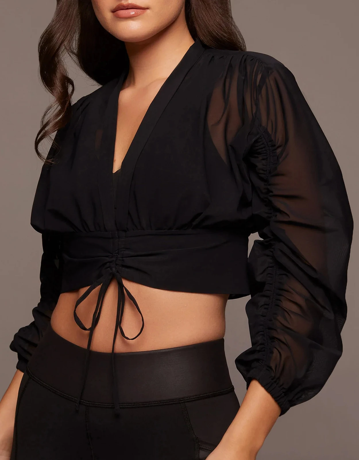 Michi Maverick Long Sleeve Cropped Top-Black
