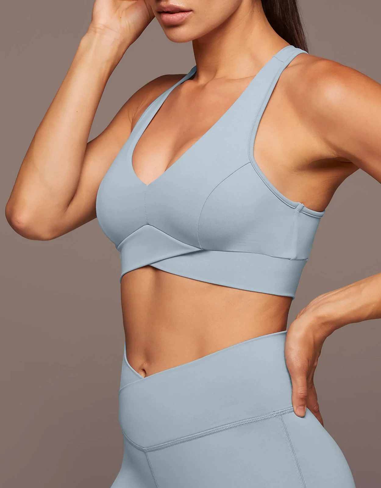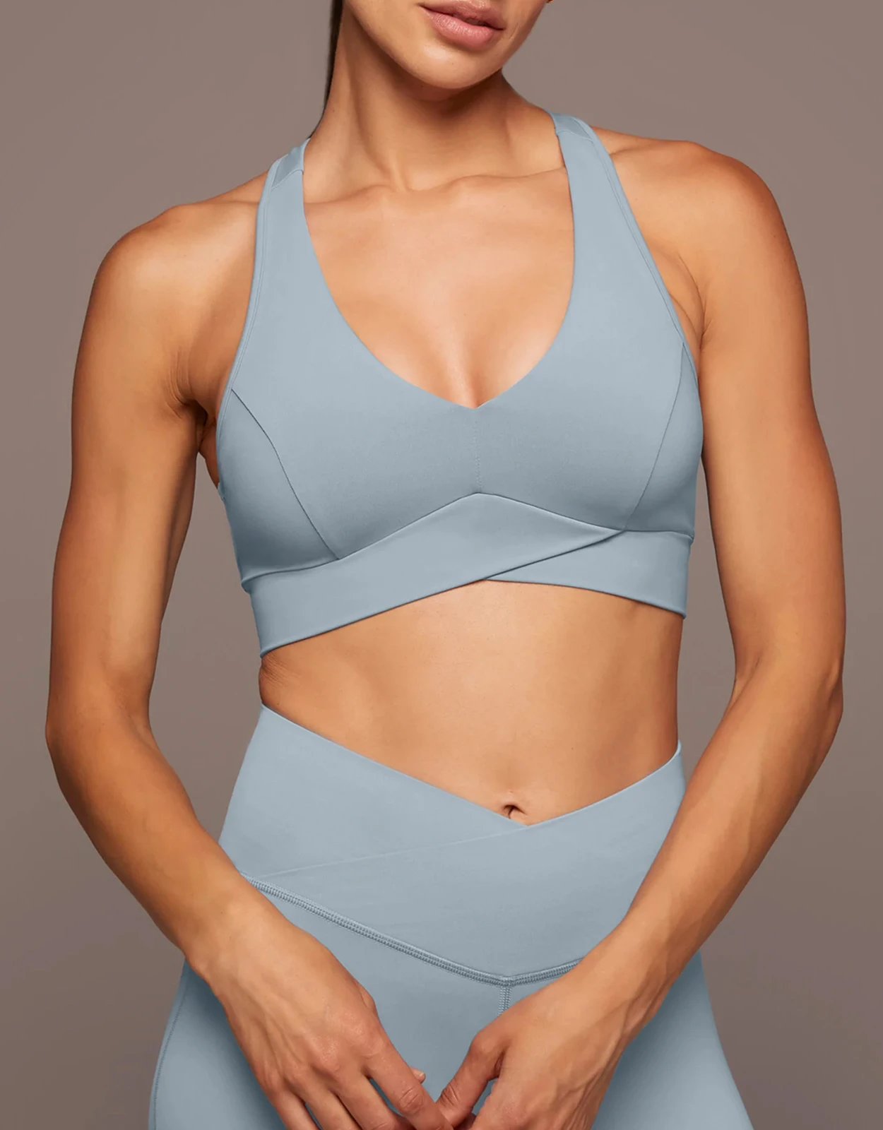 Michi Ray V-Neck Longline Bra-Ice Blue