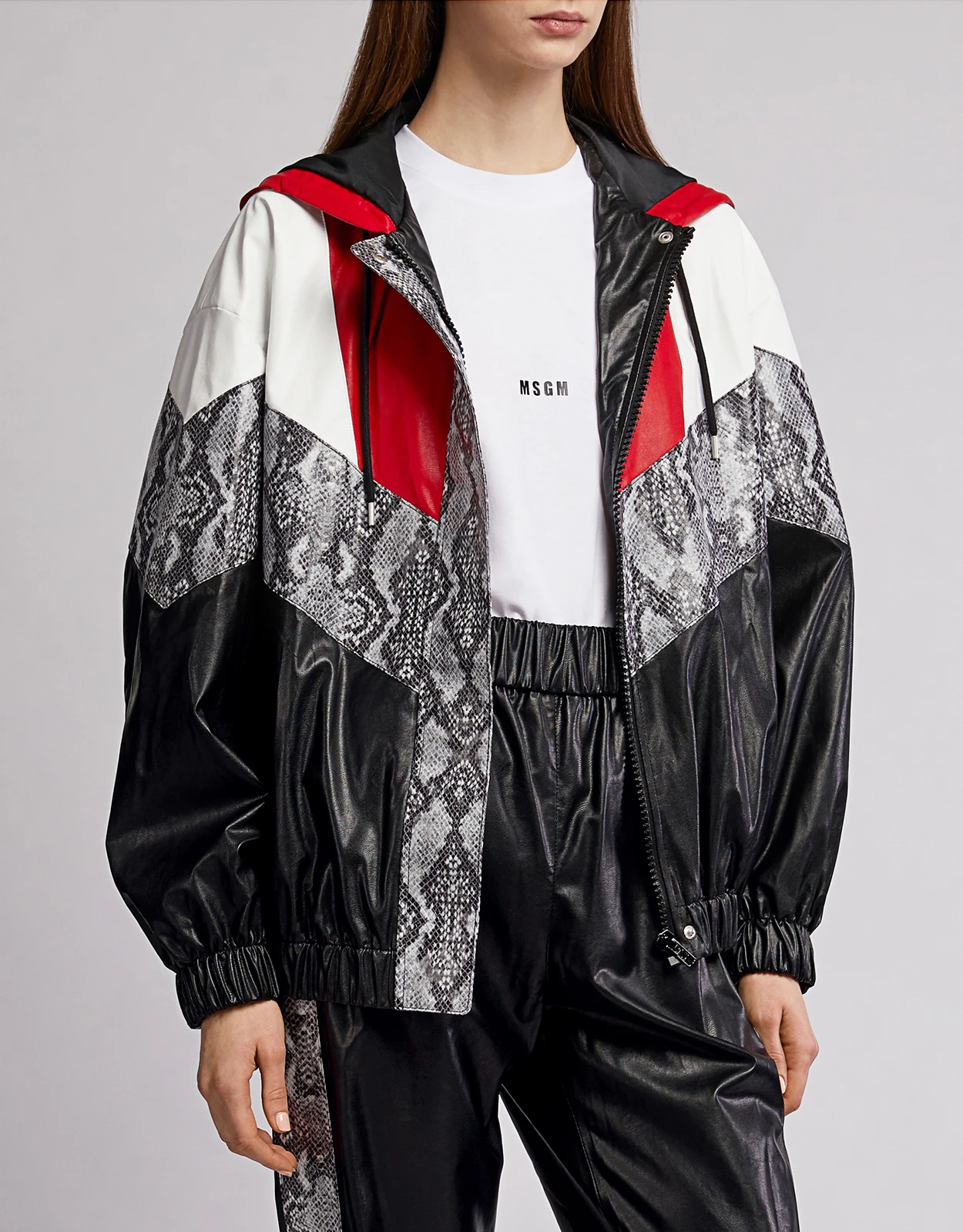 MSGM Snake Skin Patchwork Faux Leather Hoodie Jacket