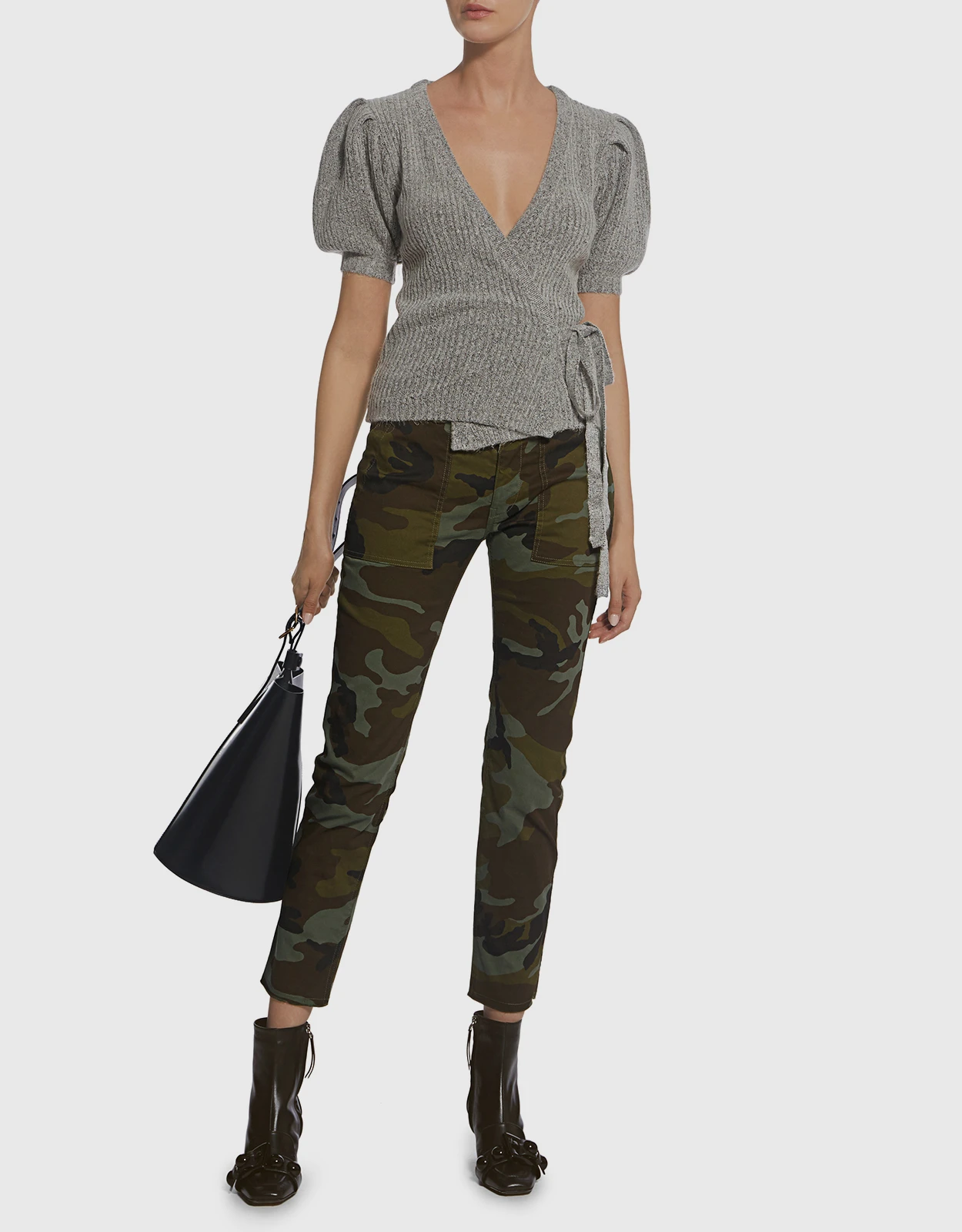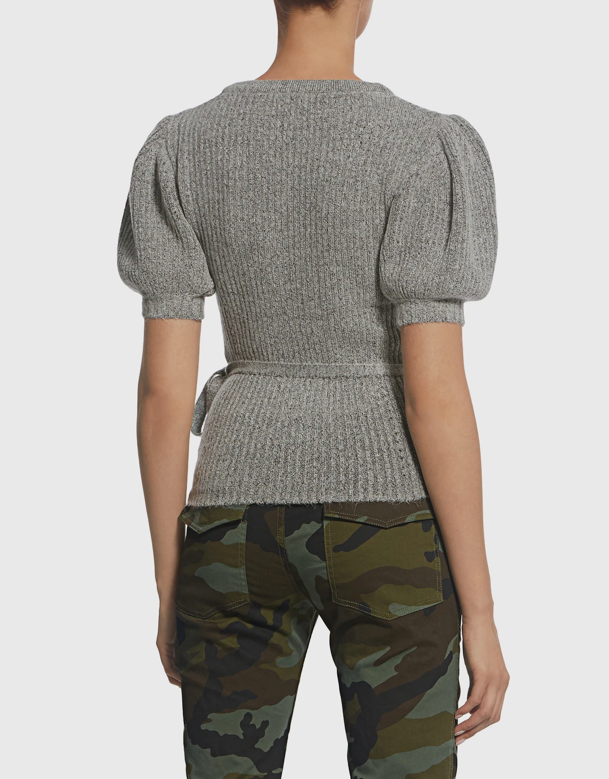 Rachel Comey Agita V-neck Puff Sleeve Wrap Cropped Knit Top