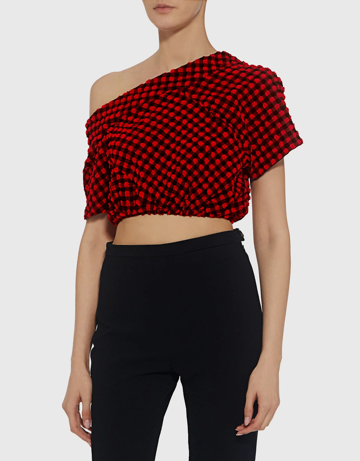 Rachel Comey Pout Off-the-Shoulder Gingham Cropped Top