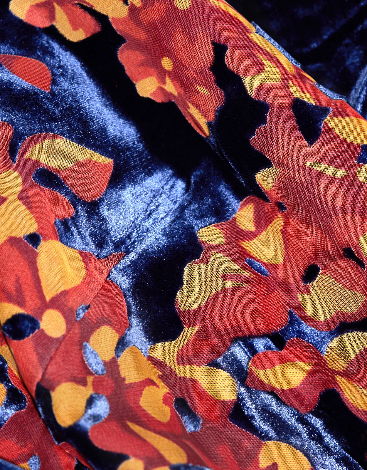 Saloni Tina Boat-neck Open Back Velvet Floral Midi Dress