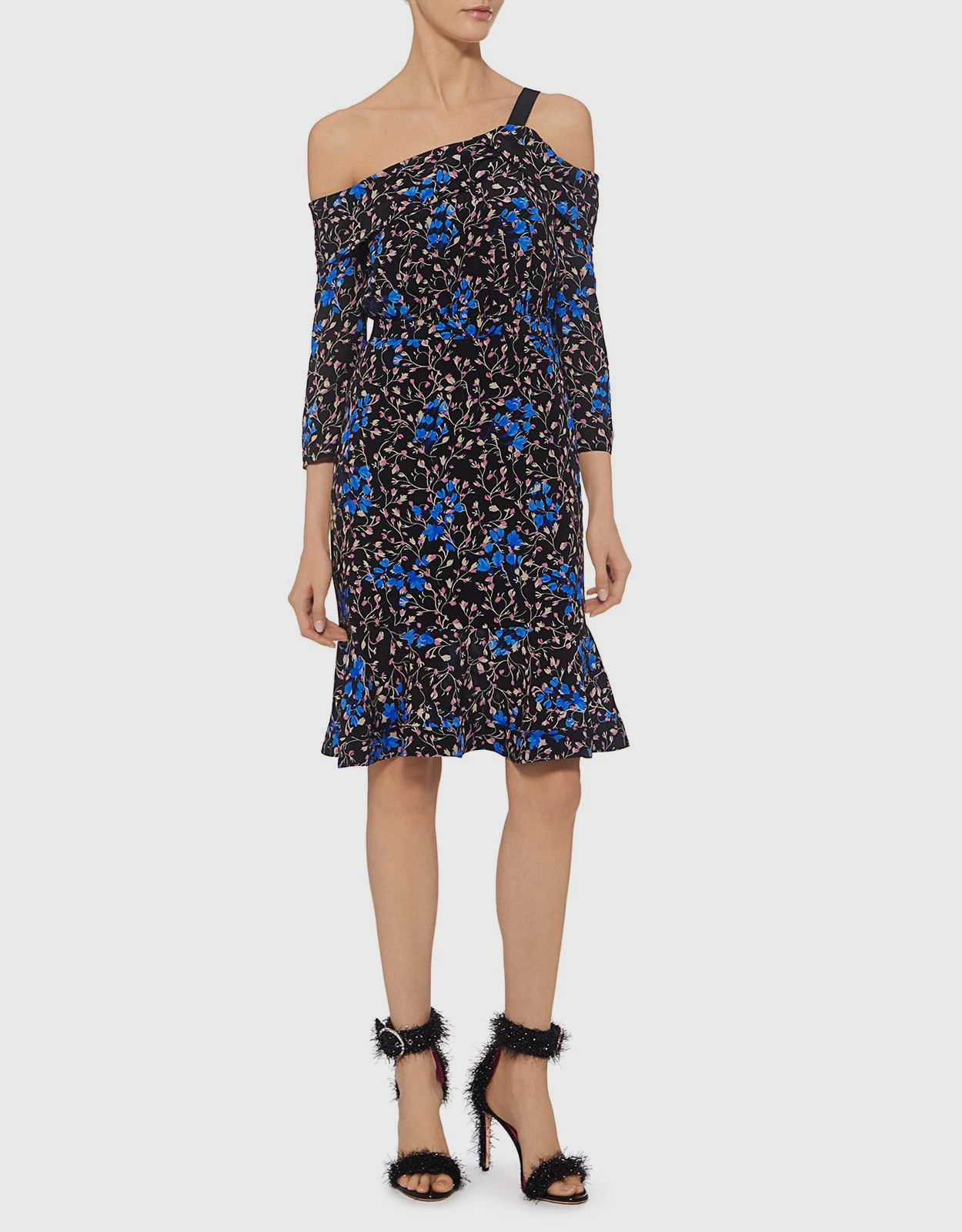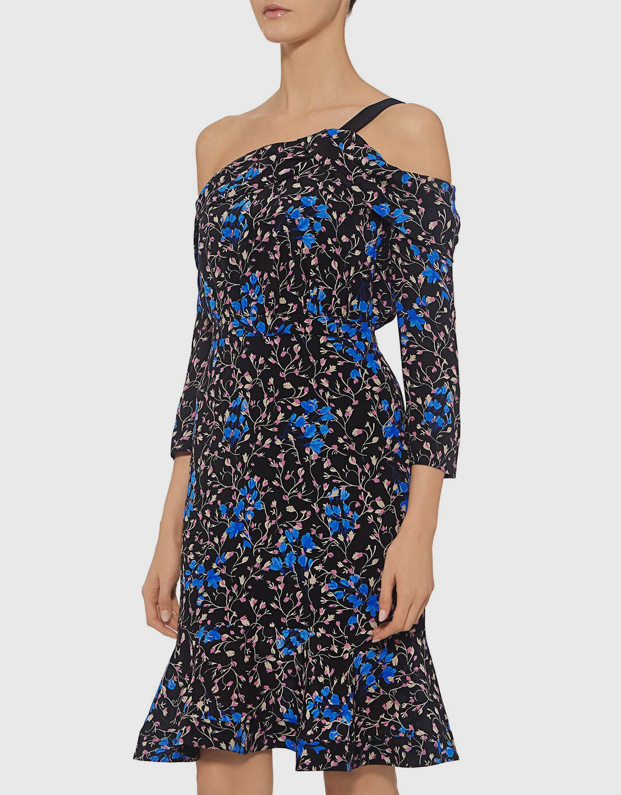 Saloni Tricia Off-the-Shoulder Silk Floral Ruffled Dress