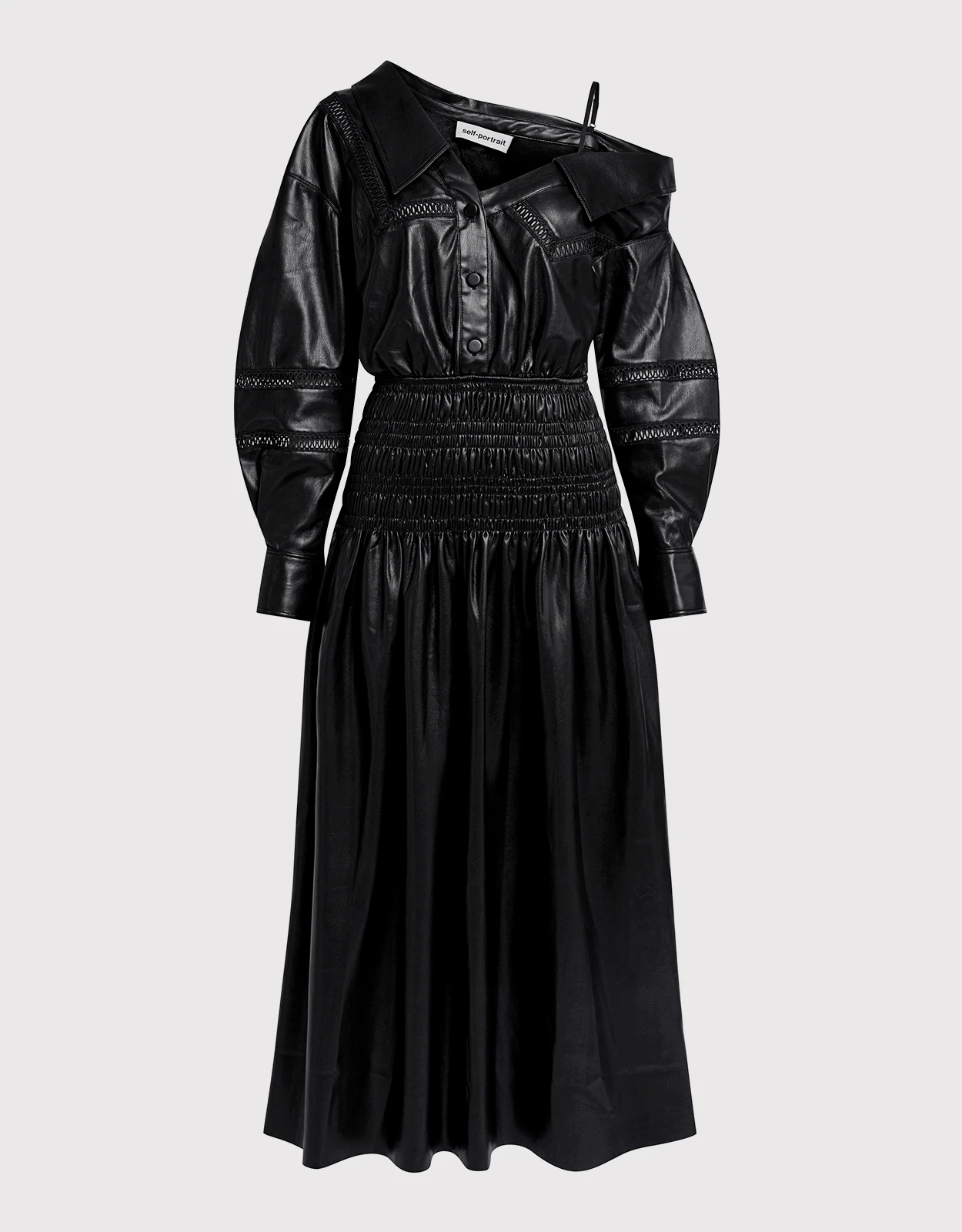 SELF PORTRAIT Self-Portrait Faux Leather Off-the-Shoulder Midi Dress