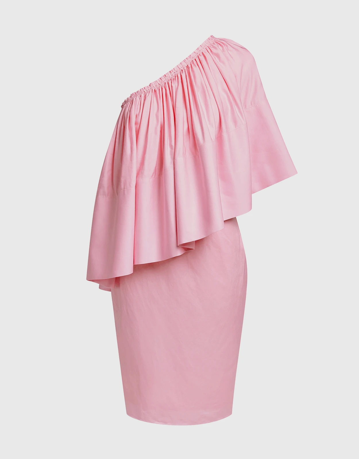 Solace London Layci One-shoulder Ruffled Knee Length Dress