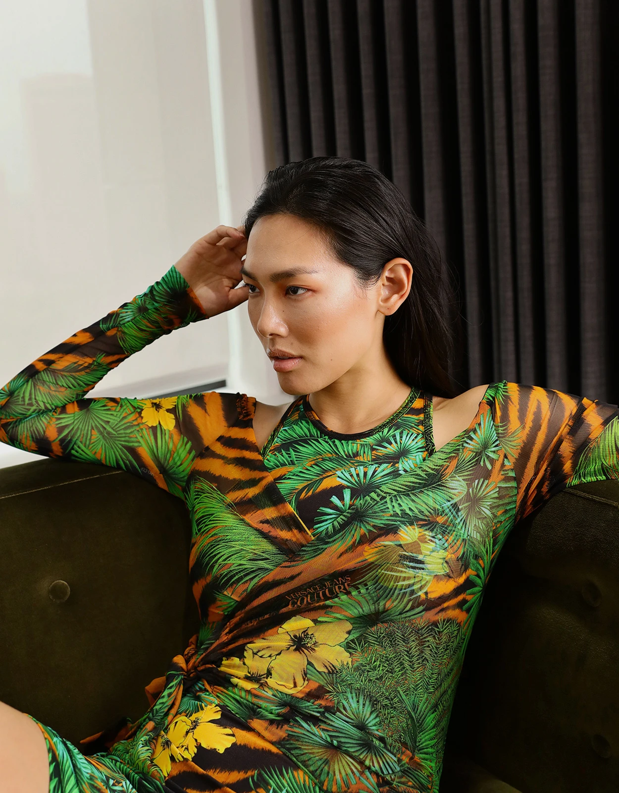 Versace Jeans Couture Tropical Tiger Print Fitted Mini Dress